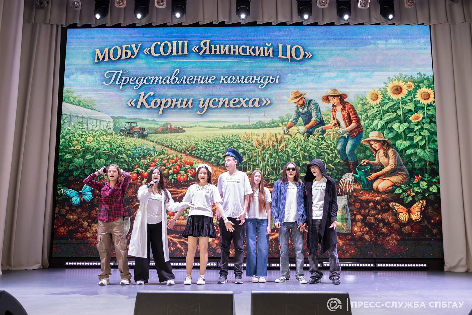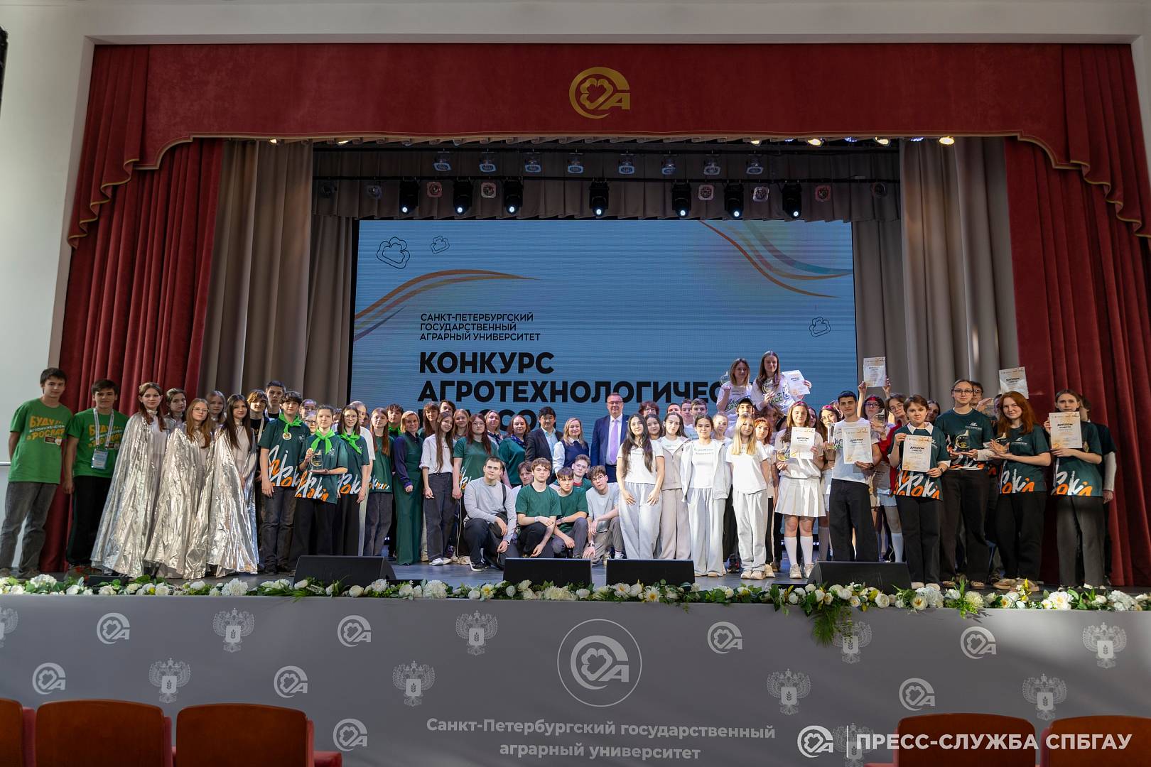 Кульминацией праздничного вечера стала главная интрига конкурса. Для объявления абсолютного победителя и вручения главной награды — Гран-при «Лучший агротехнологический класс 2026 года» — на сцену были приглашены директор ГКУ ЛО «Агентство по обеспечению деятельности агропромышленного и рыбохозяйственного комплекса Ленинградской области» Евгений Курц и проректор по профориентационной работе и молодежной политике СПбГАУ Анатолий Ким. Гран-при конкурса завоевала Ломоносовская общеобразовательная школа №3
