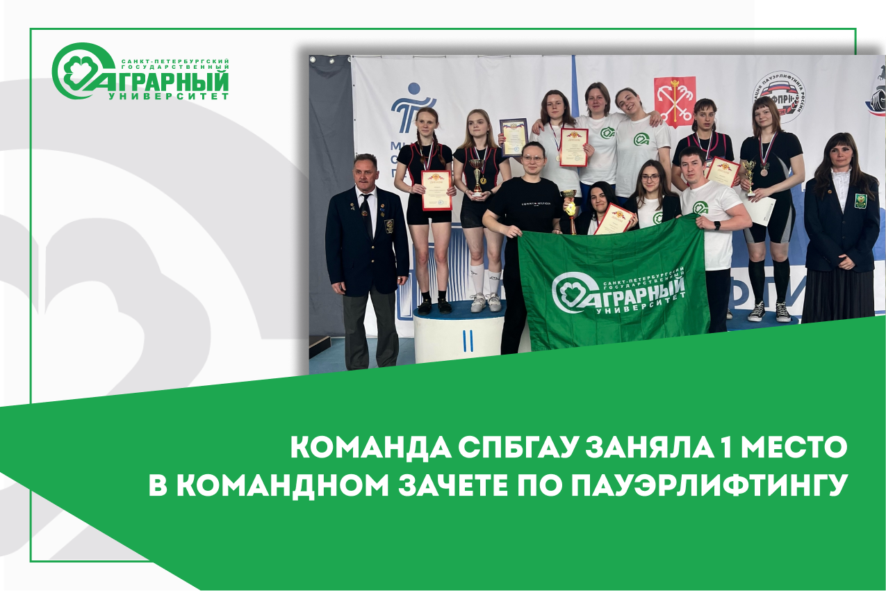 В Северной столице прошли Региональные соревнования и Кубок Санкт-Петербурга по пауэрлифтингу (классическое троеборье). Сборная Санкт-Петербургского государственного аграрного университета показала выдающиеся результаты, завоевав первое место в командном зачете.