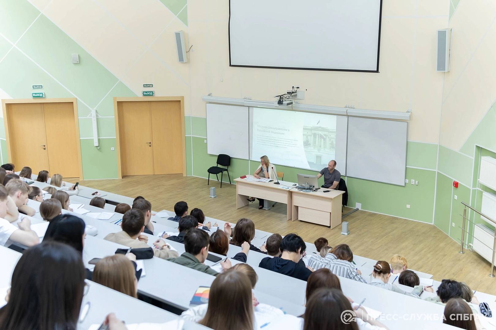 Санкт-Петербургский государственный аграрный университет посетили глава МО Оккервиль Олег Голынский и руководитель юридического отдела аппарата Муниципального Совета Кристина Поздеева. Целью визита стало ознакомление студентов Юридического института имени Е.А. Энгеля с практической деятельностью органов местного самоуправления.