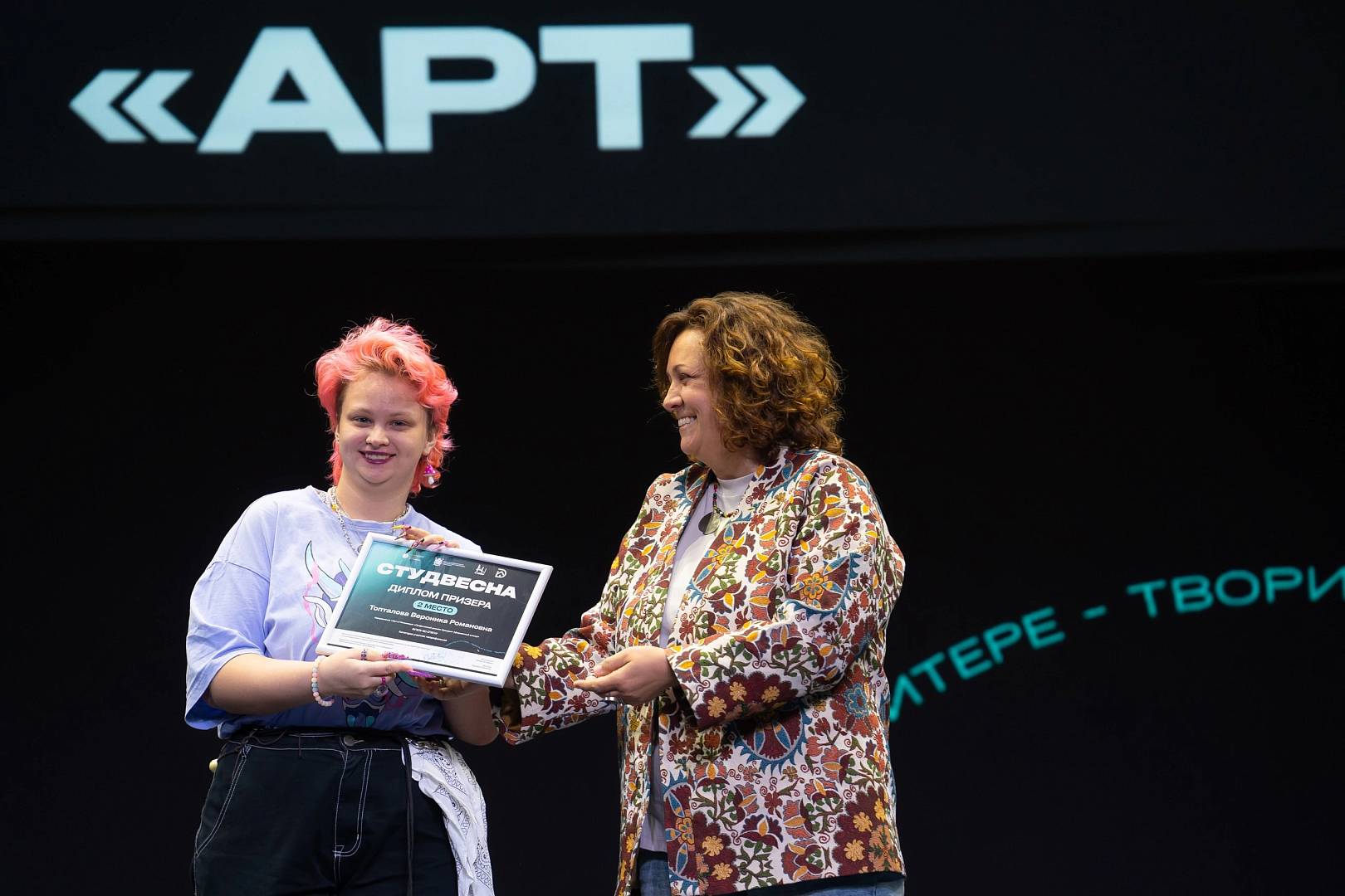 В направлении АРТ наш университет также может гордиться своими талантливыми студентами. Вероника Топталова проявила себя как блестящий графический дизайнер, став лауреатом II степени в номинации «Графический дизайн. Брендинг».