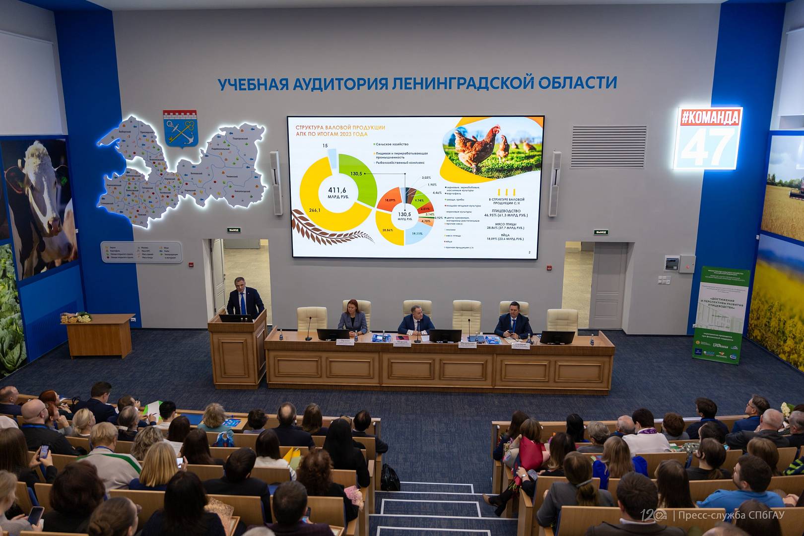 С докладом выступил Олег Малащенко – Заместитель Председателя Правительства Ленинградской области – председатель комитета по агропромышленному и рыбохозяйственному комплексу, тема выступления: «Современное состояние отрасли птицеводства в Ленинградской области».