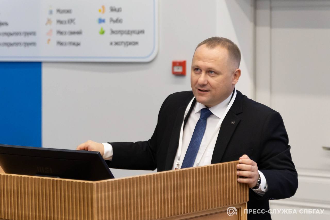 Почетным гостем и спикером мероприятия выступил ректор СПбГАУ, доктор ветеринарных наук, профессор Виталий Морозов, который представил доклад на актуальную тему: «Подготовка кадров для АПК на базе СПбГАУ». В своем выступлении ректор акцентировал внимание на инновационных подходах и передовых методиках, которые применяются в университете для подготовки высококвалифицированных кадров для агропромышленного комплекса.Также в своем докладе Виталий Юрьевич подробно рассказал о комплексной системе образования в СПбГАУ, которая охватывает не только фундаментальную теоретическую подготовку, но и глубокую практическую направленность.