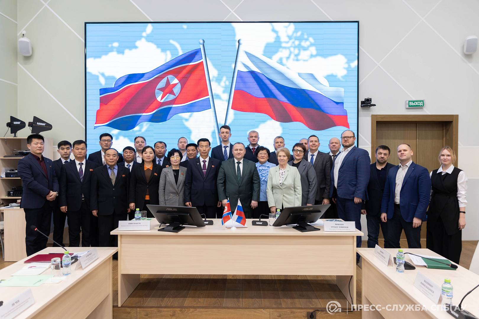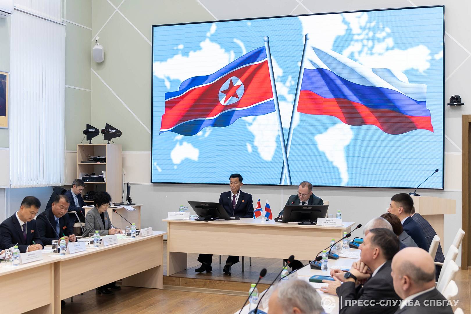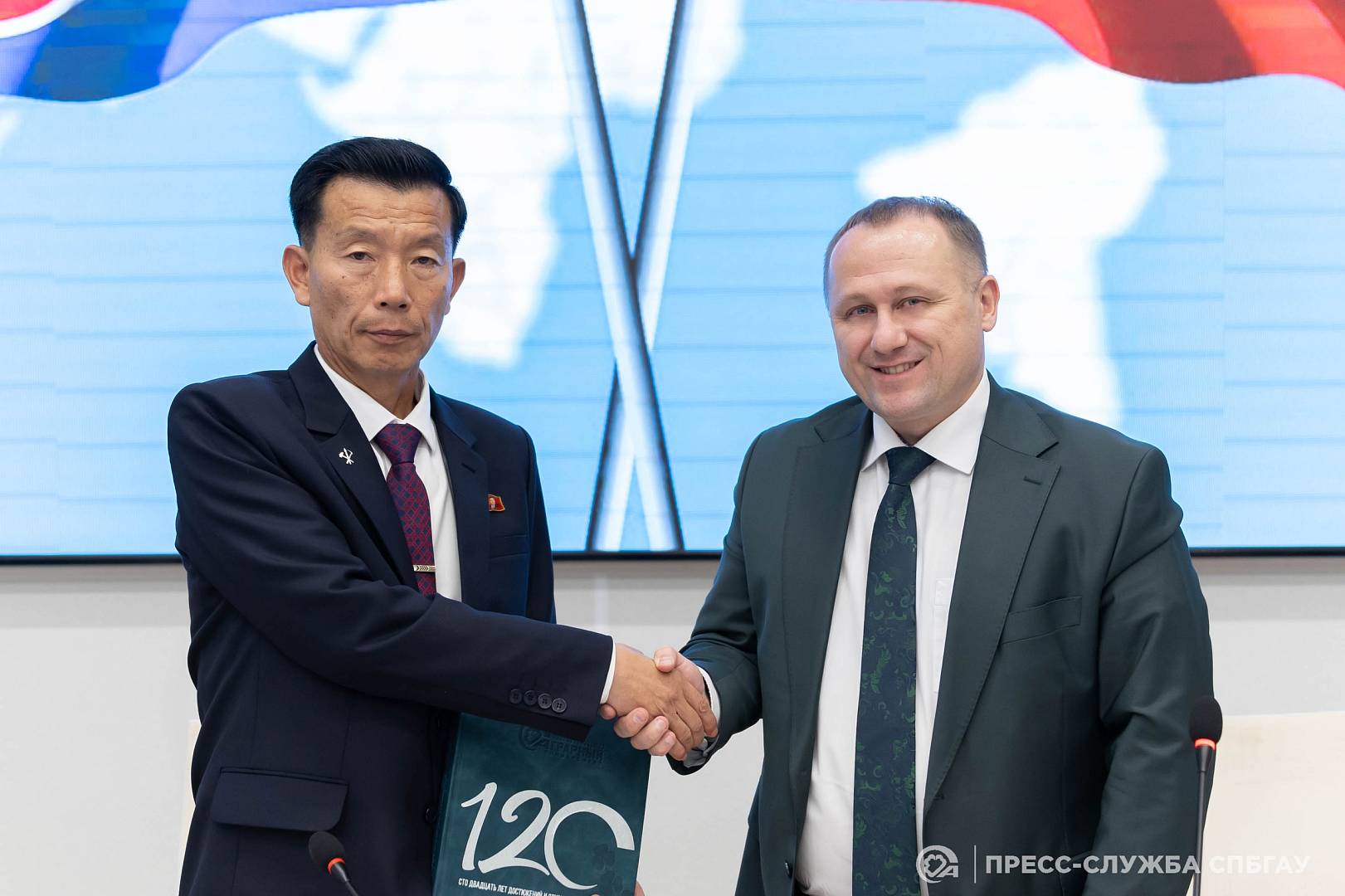 26 ноября Санкт-Петербургский государственный аграрный университет (СПбГАУ) принял делегацию из Академии сельскохозяйственных наук Корейской Народно-Демократической Республики (КНДР). Визит носил официальный характер и был направлен на установление дружеских отношений и определение перспектив для будущего развития научно-образовательного сотрудничества между двумя странами. В ходе встречи гостям была представлена подробная информация об истории становления и выдающихся научно-образовательных достижениях СПбГАУ. Особое внимание было уделено обсуждению текущих и будущих направлений развития российско-корейских отношений в области науки и образования.