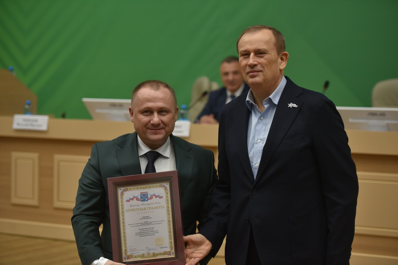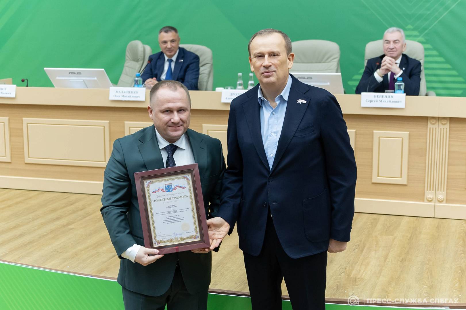 После приветственного слова Александр Юрьевич наградил отличившихся аграриев за их вклад в развитие агропромышленного комплекса. Среди награжденных был ректор Санкт-Петербургского государственного аграрного университета, доктор ветеринарных наук, профессор Виталий Морозов.