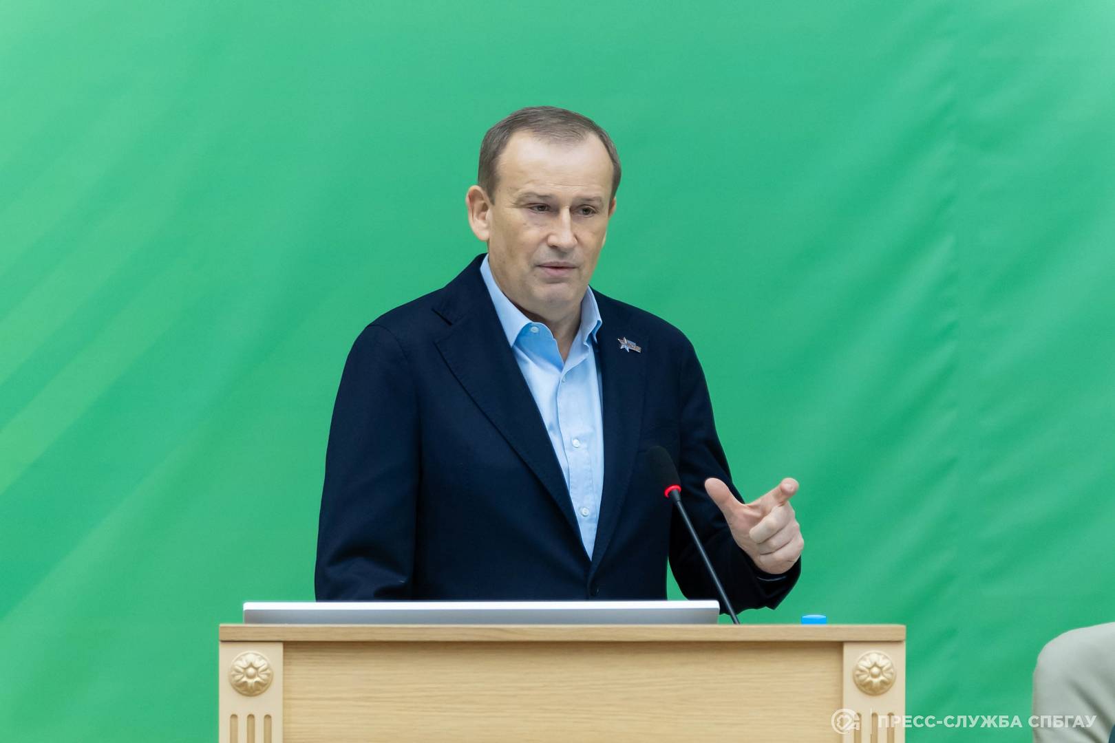 В ходе совещания Виталий Юрьевич выступил с докладом на тему стратегического взаимодействия между Санкт-Петербургским государственным аграрным университетом и Правительством Ленинградской области. В своём выступлении он поделился планами по развитию агроклассов в регионе, подчеркнул актуальность непрерывного агрообразования и рассказал о целевом обучении в стенах аграрного университета.