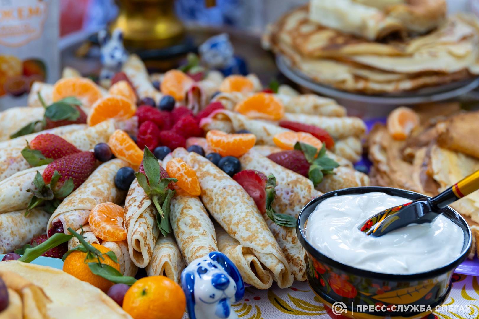 В Санкт-Петербургском ГАУ прошли масштабные масленичные гуляния, объединившие сотни студентов, преподавателей и сотрудников. Праздник стал настоящим торжеством народных традиций, гостеприимства и студенческого творчества. Главной изюминкой мероприятия стал конкурс подворий. Каждый институт и колледж СПбГАУ подготовил свою уникальную локацию, оформленную в традиционном стиле. Гостей ждало невероятное разнообразие блинных блюд: от классических кружевных блинов до сложных авторских композиций с начинками на любой вкус. Участники не только демонстрировали кулинарные таланты, но и вовлекали прохожих в старинные игры, забавы и творческие состязания.